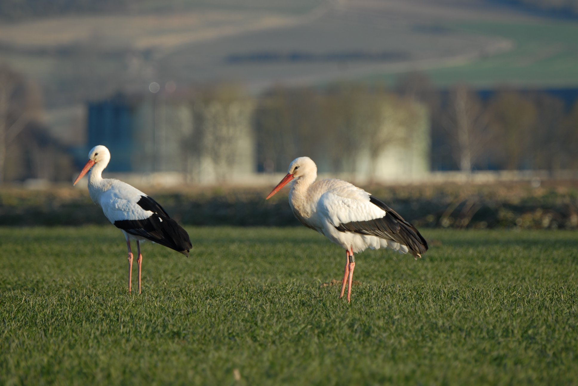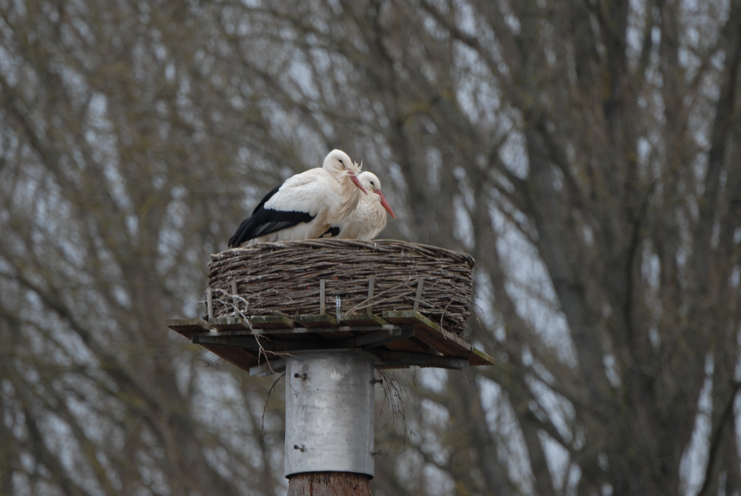 Das sind die beiden Anwärter auf Waberns ältesten Storchenhorst in den Ederauen: CARLOS und ROMY