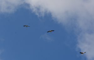So wurde der neue Horst an der Efze bei Mühlhausen gewählt und das bewährte sich dann auch. Unmittelbar nach dem Abflug von der Wiese in ca. 30m Entfernung, wurde der Horst auch angeflogen, von dort konnte man erst einmal die Lage peilen… Ca 10 Minuten verweilte er dort.