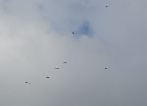Störche nutzen beim Zug in das Winterquartier warme Aufwinde die durch den erwärmten Boden entstehen. Sie schrauben sich in diesem Aufwind in die Höhe um dann im Segelflug zu gleiten. Ein Ruderflug wäre für die Tiere auf der langen Strecke viel zu kräftezehrend.