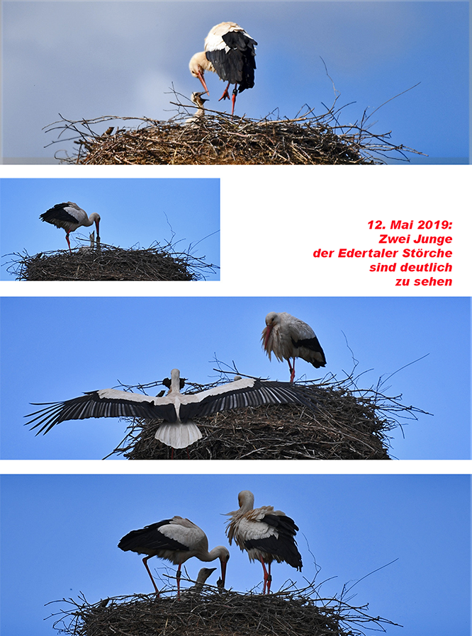 In einigen Horsten wurden 3, im ältesten Waberner Storchenhorst Wabern I, Ederauen, sogar 4 Jungstörche flügge.