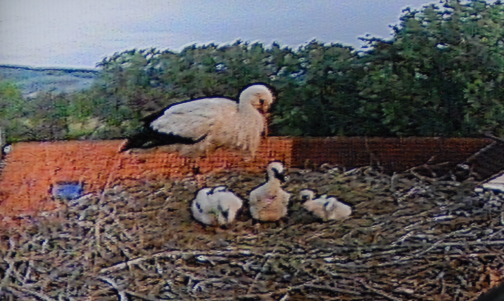 Der gemeldete Regen kommt hoffentlich über die Nacht und den Tag verteilt… Vielerorts sind Storchenküken aufgrund der Kälte und Nässe eingegangen. Der Regen ist für Wabern wichtig, aber Kälte vertragen die Jungstörche nicht gut in Kombination mit Nässe. Hoffen wir es wird nicht so schlimm..