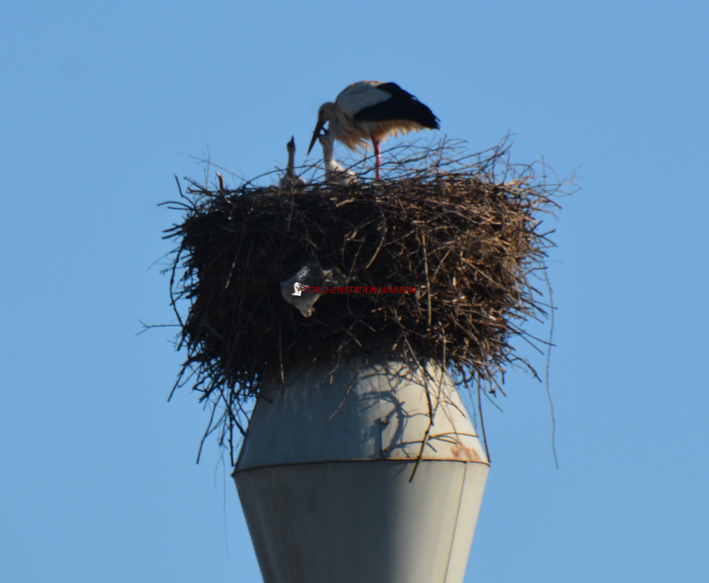 Der immer wieder kehrende Regen hat in diesem Jahr zu einem recht guten Erfolg bei Waberns Storchenpaaren geführt. Selbst das Paar auf der kath. Kirche konnte 2 Jungstörche aufziehen.