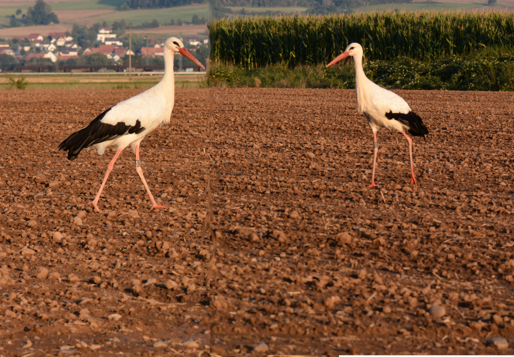 Die Felder sind feucht, Nahrung ist leicht zu finden. Wir sind gespannt wann sich unsere Zugstörche auf den Weg machen ins Winterquartier.