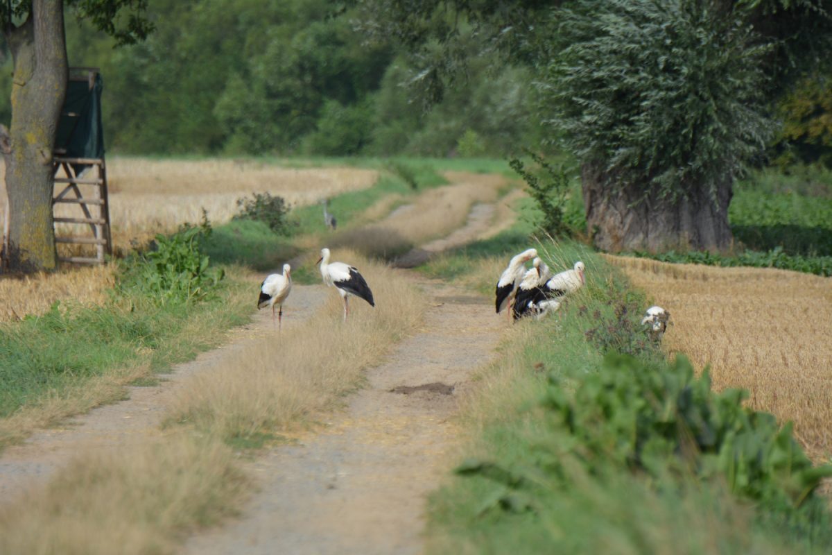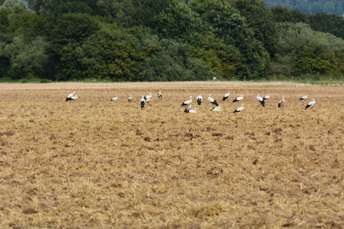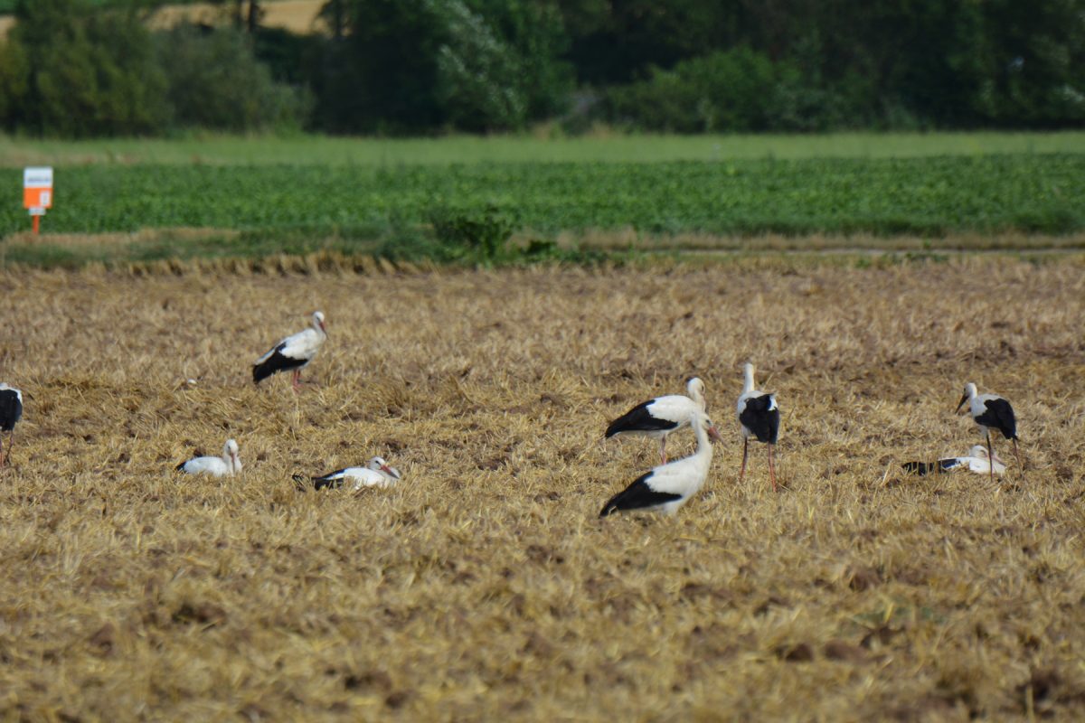 Die Felder sind feucht, Nahrung ist leicht zu finden. Wir sind gespannt wann sich unsere Zugstörche auf den Weg machen ins Winterquartier.