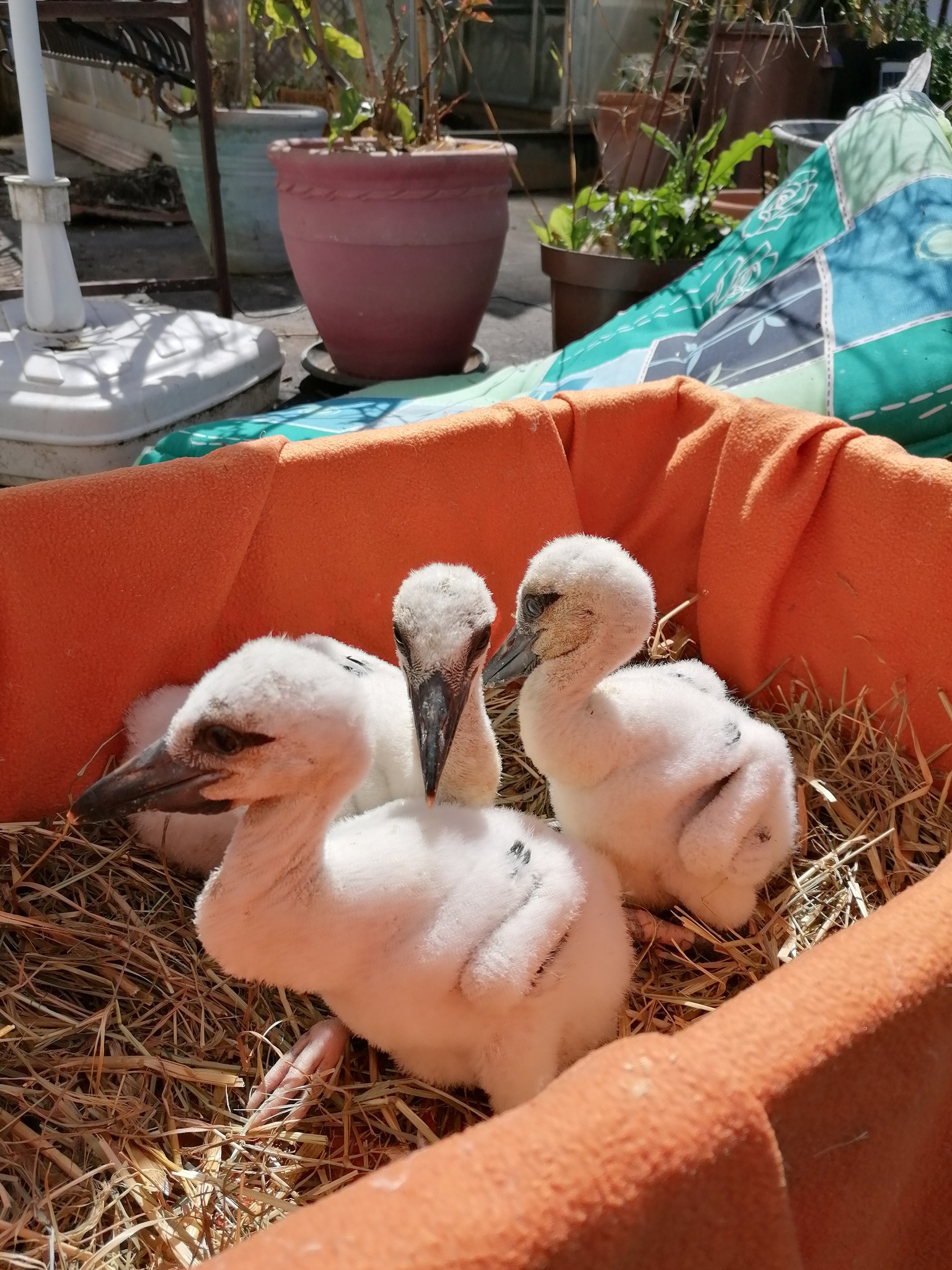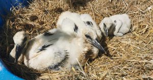 Wir haben die Storchenküken in Spangenberg übernommen. Aus den Eiern ist nichts mehr geschlüpt, eins war abgestorben, das zweite unbefruchtet.