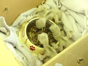 erste Fütterung bei der Abholung nach 14 Tagen sind sie schon mächtig gewachsen Satt und so müde