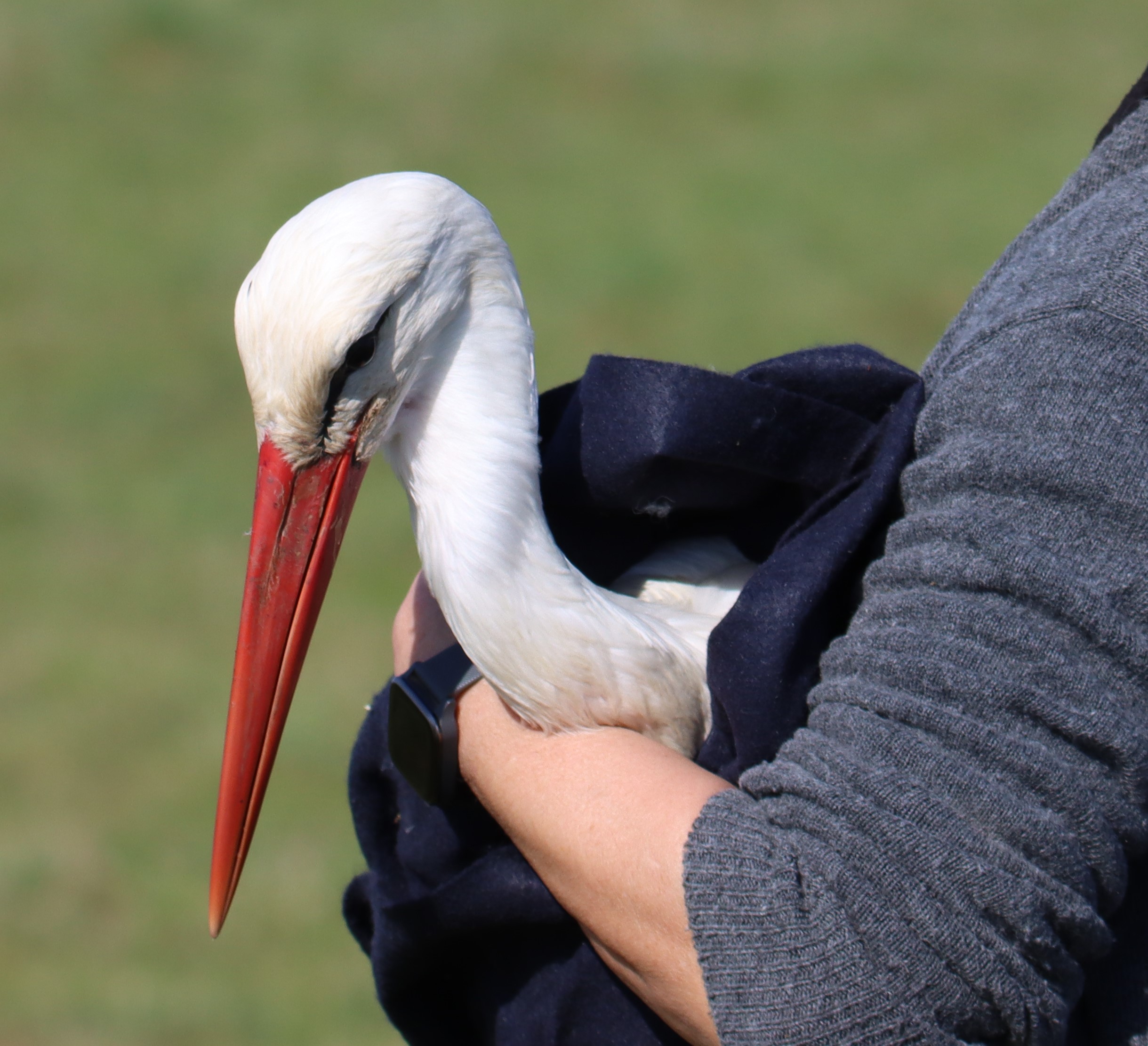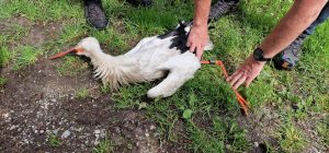 Auch der erste Pflegling der Saison 2023 ist eingetroffen, ein Weißstorch aus dem Marburger Raum.
