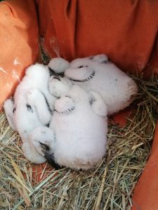 Unsere jüngsten 3 Küken stammen aus Nesselröden und mussten geborgen werden, weil ein Elternteil von einem Prädatoren getötet wurde. Er lag zum Glück tot unter dem Horst, so dass die Tragödie von den Horstbesitzern Familie Rimbach sofort bemerkt wurde und Rolf Semmelrodt informiert wurde.