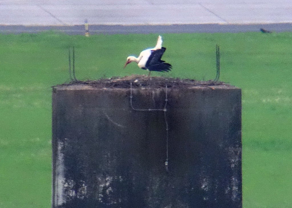Da auch heute noch ‘gebrütet’ wurde, kann man wohl davon ausgehen dass die Eier wohl unbefruchtet gewesen sind; allenfalls ein Nachgelege nach Verlust des ersten Geleges würde dieses Verhalten erklären. Allerdings ist in den letzten Tagen der Horst auch schon mehrfach unbesetzt beobachtet worden, sodass von keiner Brut mehr oder gar erfolgreichem Schlupf die Rede sein kann. Wiederholt konnten Angriffe von Fremdstörchen beobachtet werden, der Horst jedoch wurde weiter verteidigt und als Brutplatz weiterhin angesehen. Dies lässt weiterhin auf eine enge Horstbindung schliessen, so dass ggf. ein neuer Versuch in der nächsten Brutsaison gestartet werden könnte.