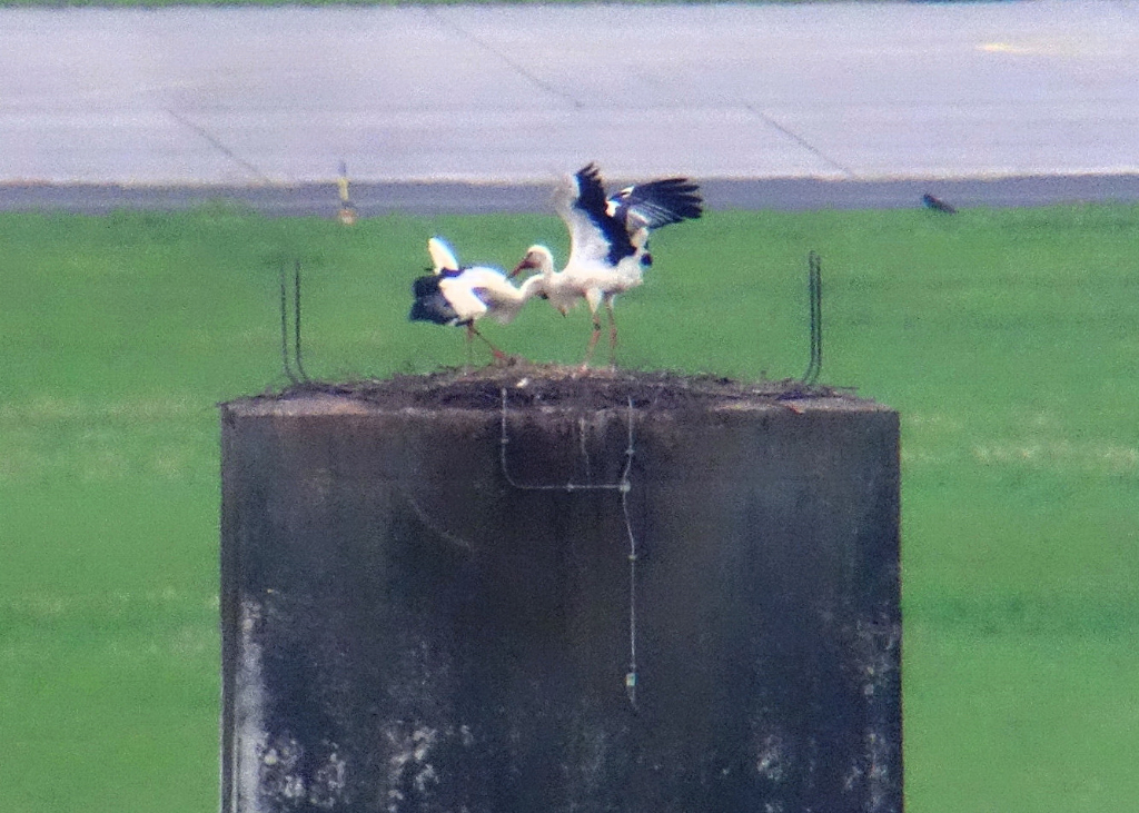 Erstmals seit Jahren wird auf dem Horst werden auf dem Horst wieder Jungstörche flügge. 2 Störche konnten von Manfred Gunia beoabchtet werden.
