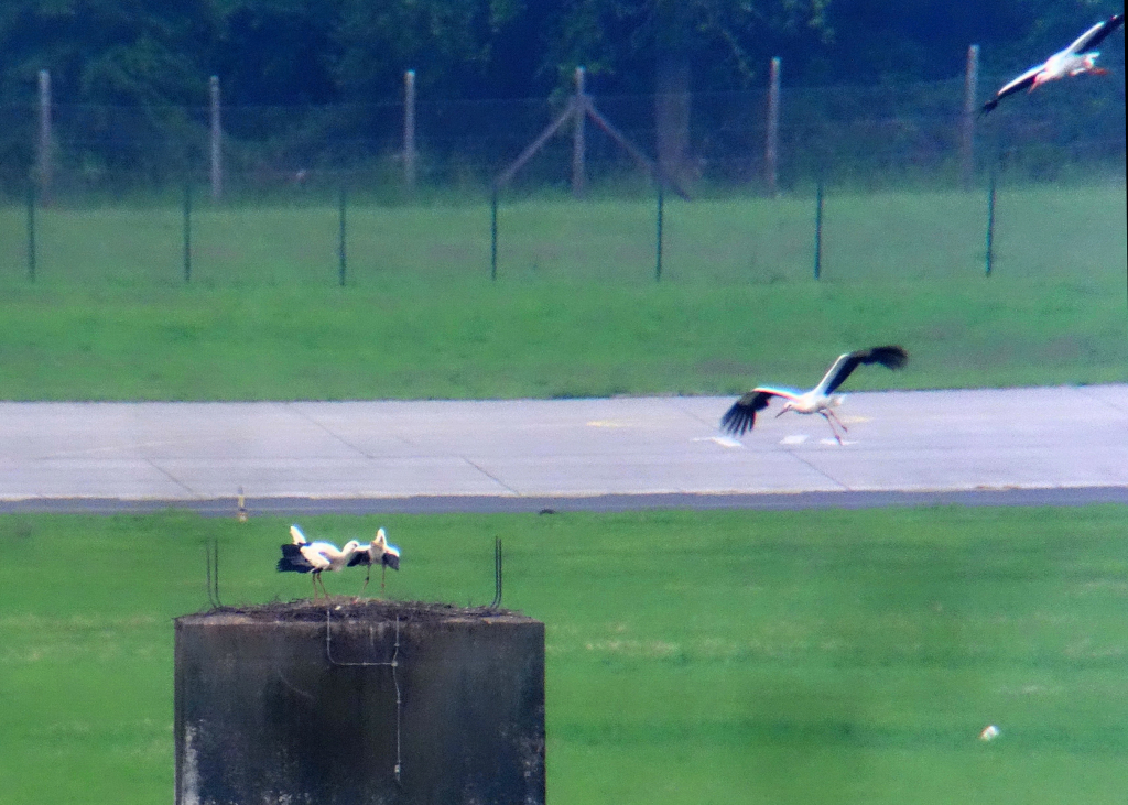 Auch in Fritzlar ist der erste Weißstorch zurück. Im vergangenen Jahr wurde dort erstmals erfolgreich gebrütet. Das Paar ist entgegen dem Vorjahr aber im Herbst abgezogen. Die Weißstörche sind dort herzlich willkommen, und der Fluglärm stört sie nicht.