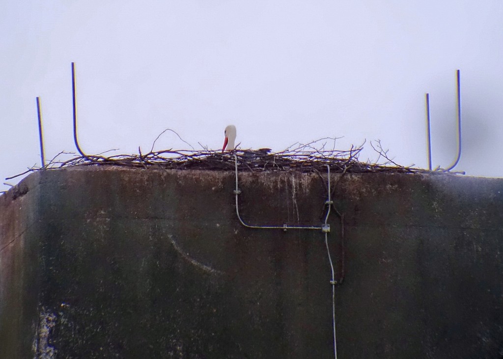 In Fritzlar auf dem Bundeswehrgelände wird seit ein paar Tagen auch schon gebrütet: um 20:00Uhr saß der Storch auf seinem Gelege, der Partner war wohl noch auf Nahrungssuche.