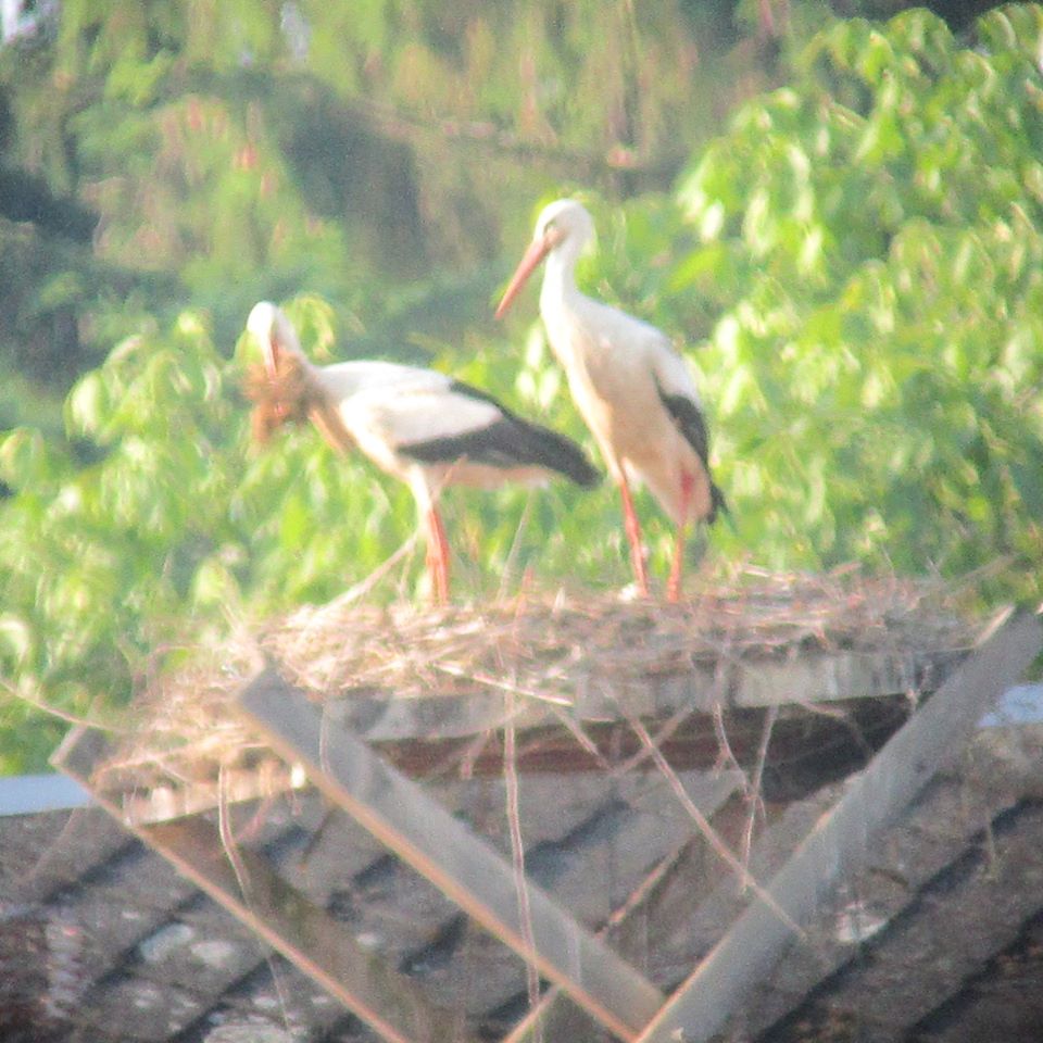 Nach ausgiebiger Erkundung des Lebensraumes von Niedermöllrich bis Lohre und einer Eingewöhnung in den durchaus lebhaften Alltag der Cappeler Strasse, haben die beiden beschlossen den Horst der Storchenstation zur Brut zu nutzen.