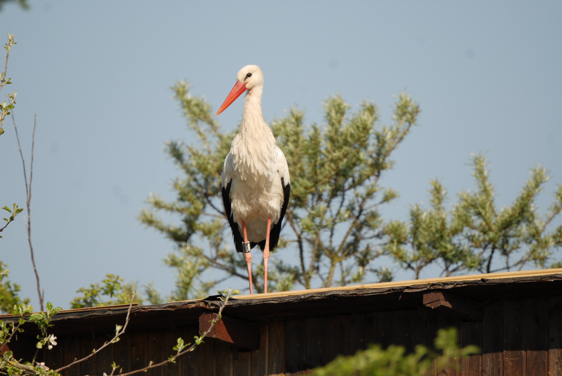 Weißstorch Rudi aus dem vergangenen Jahr ist weiter in der Umgebung und hat am 10.4. letztmalig heftig angegriffen. Wir hoffen, er hat dabei keine Verletzungen davon getragen.