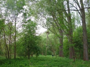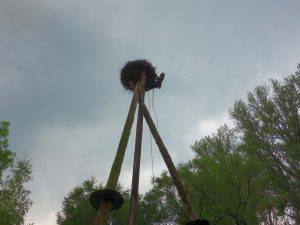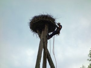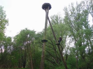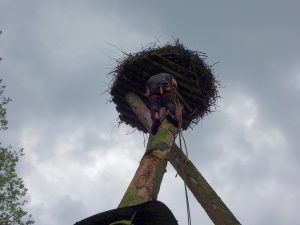 Im Jahr 2016 wurde der Horst saniert, die Stämme waren verfault, der Horst nicht mehr sicher und obendrein stark eingewachsen, der Anflug für die Störche und vor allem den Nachwuchs erschwert.