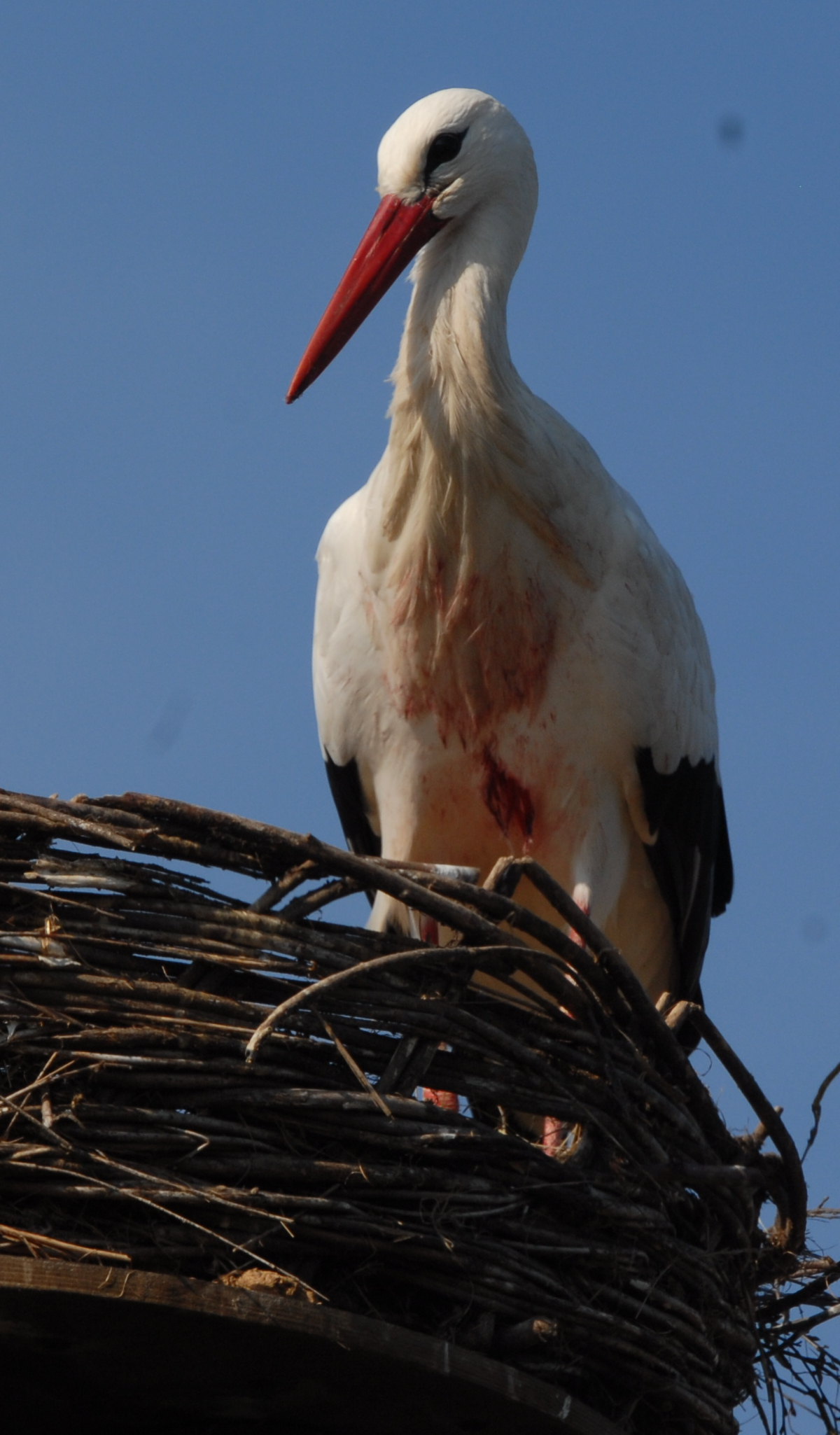 Brutbeginn war um den 23. April 2012, die Partnerin ist unberingt (Feline) Mitte Mai zeigte sich, dass 3 Jungstörche geschlüpft waren.