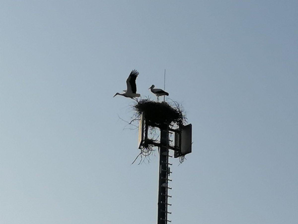 Es entwickelte sich fast schon zur never ending story, nachdem das Storchenpaar 2021 sehr erfolgreich auf dem Funkturm gebrütet hatte wurde Anfang 2022 eine Vergrämung gebaut.