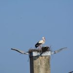 Auf einem Betonpfeiler, ringsherum Leuchten und unter dem Horst parkende Fahrzeuge der Mitarbeiter aus der Zuckerfabrik? Ja, ausgerechnet hier baute ein Storchenpaar einen Horst. Sie sind immer für Überraschungen gut, die Ciconias. Der rauhe Putz lässt selbst einen Marder hinaufklettern, die Höhe ist nicht exponiert. Es gibt ringsherum weitaus bessere Standorte in luftiger Höhe die den Störchen zur Verfügung stehen. Unweit des Parkplatzes sind auf der anderen Straßenseite Pappeln die zu einem großen Teil unbelaubt sind und eine gute Höhe bieten.