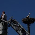 Das Paar brütet erfolgreich und mind. 2 Jungstörche schlüpfen, von denen eins allerdings abgeworfen wird.